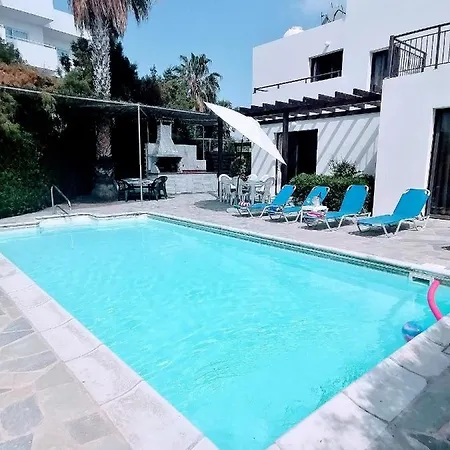Den strandnära Spacious 3 Bedroom Villa Private Pool, som ligger cirka 15 minuter med bil från Bysantinska museet, erbjuder en solig uteplats med utsikt över havet. Villan med 3 sovrum och 3 badrum, som har utsikt över bergen, bjuder in gästerna att besöka Táfoi ton Vasiléon, som ligger cirka 4 km bort.